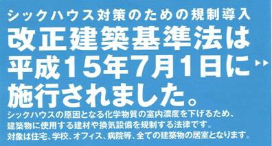 【シックハウスに対する法律一例】 ※国土交通省 基準法 令20条4〜7 |